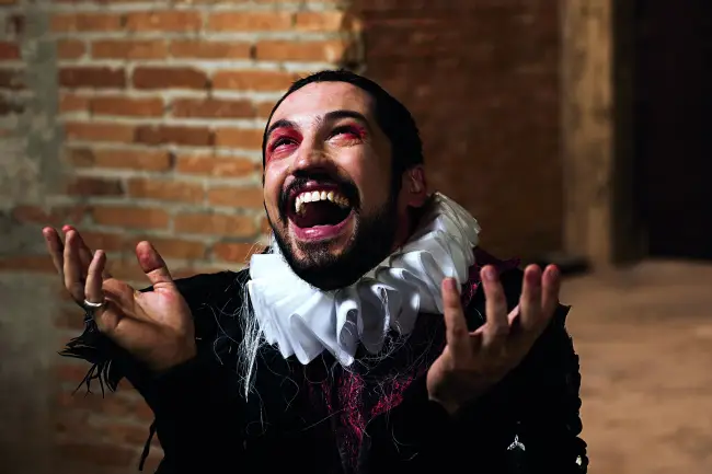 Na montagem, a arquitetura desgastada do antigo cinema é incorporada à encenação, criando um ambiente que evoca um “teatro em ruínas” e reforça a tensão da tragédia do príncipe da Dinamarca. Em cena, Leone constrói um Hamlet marcado pela hesitação e pela investigação da verdade, incorporando elementos de commedia dell’arte à fisicalidade do personagem.